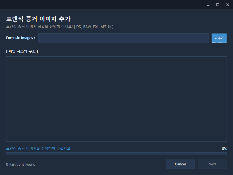 이미지 파일을 선택 후 증거 데이터를 불러오기 가능 합니다.
