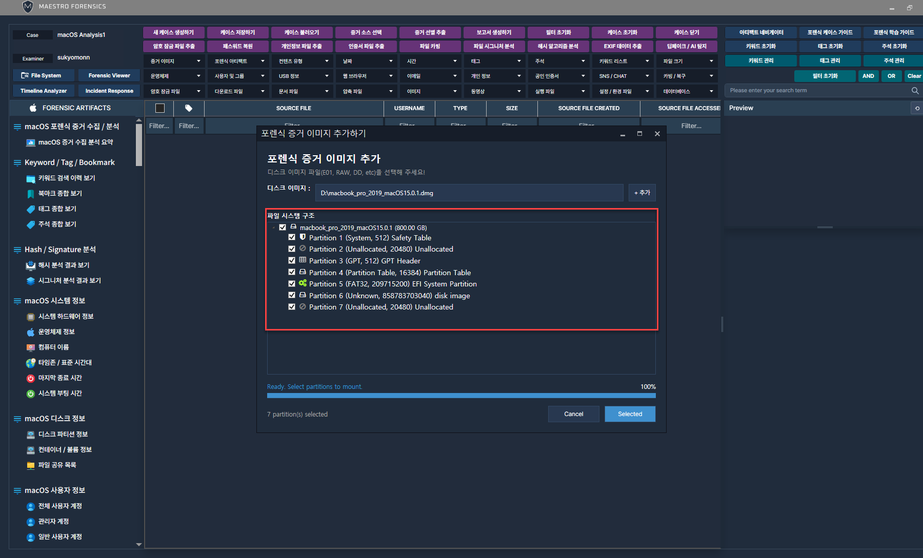 선택 한 macOS 아티팩트를 프로세스 진행창을 확인할 수 있습니다.