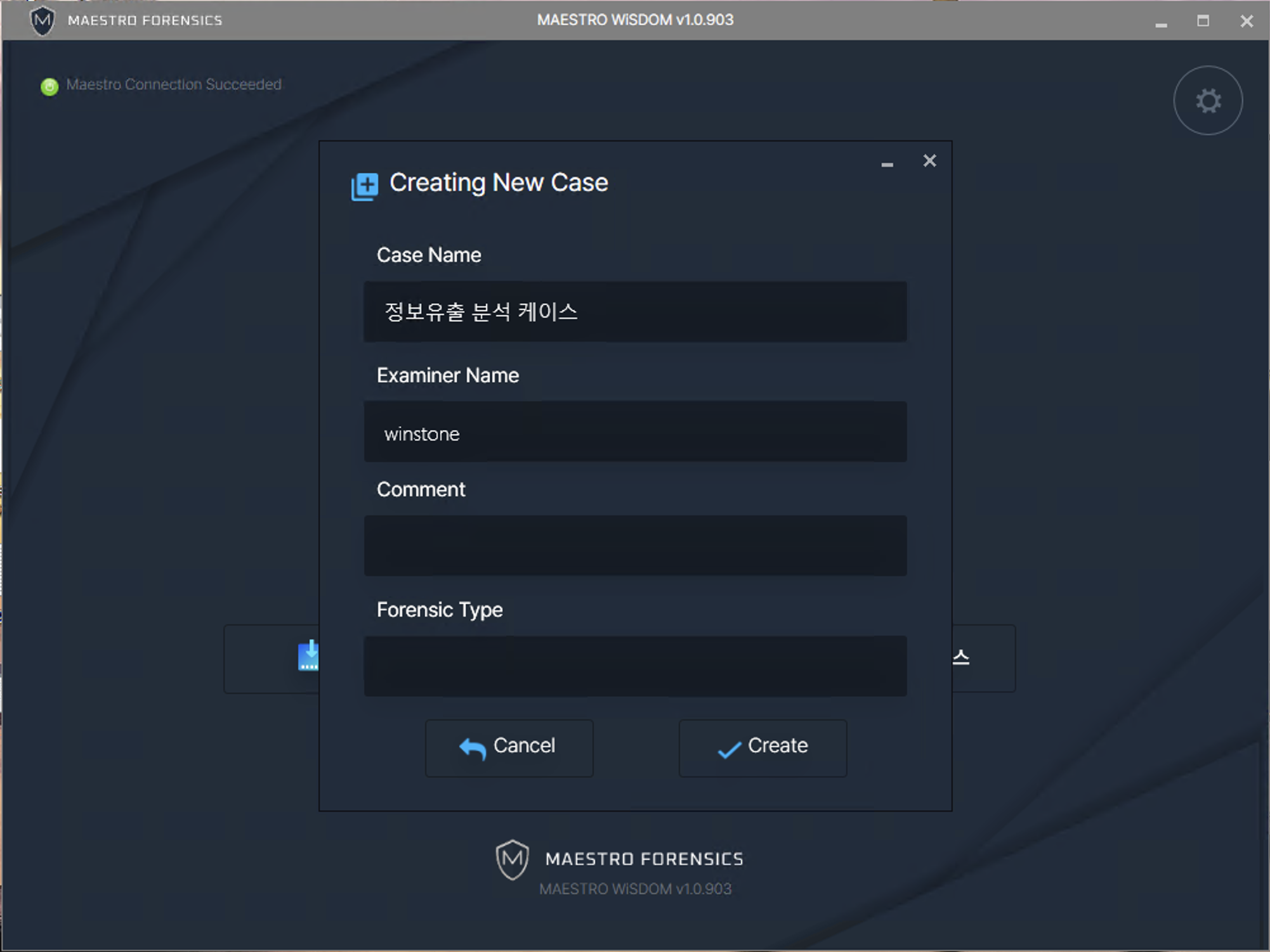 MEASTRO WiSDOM을 통해 분석할 신규 케이스를 생성하기 위해 [ 케이스 생성하기 ] 버튼을 클릭합니다.