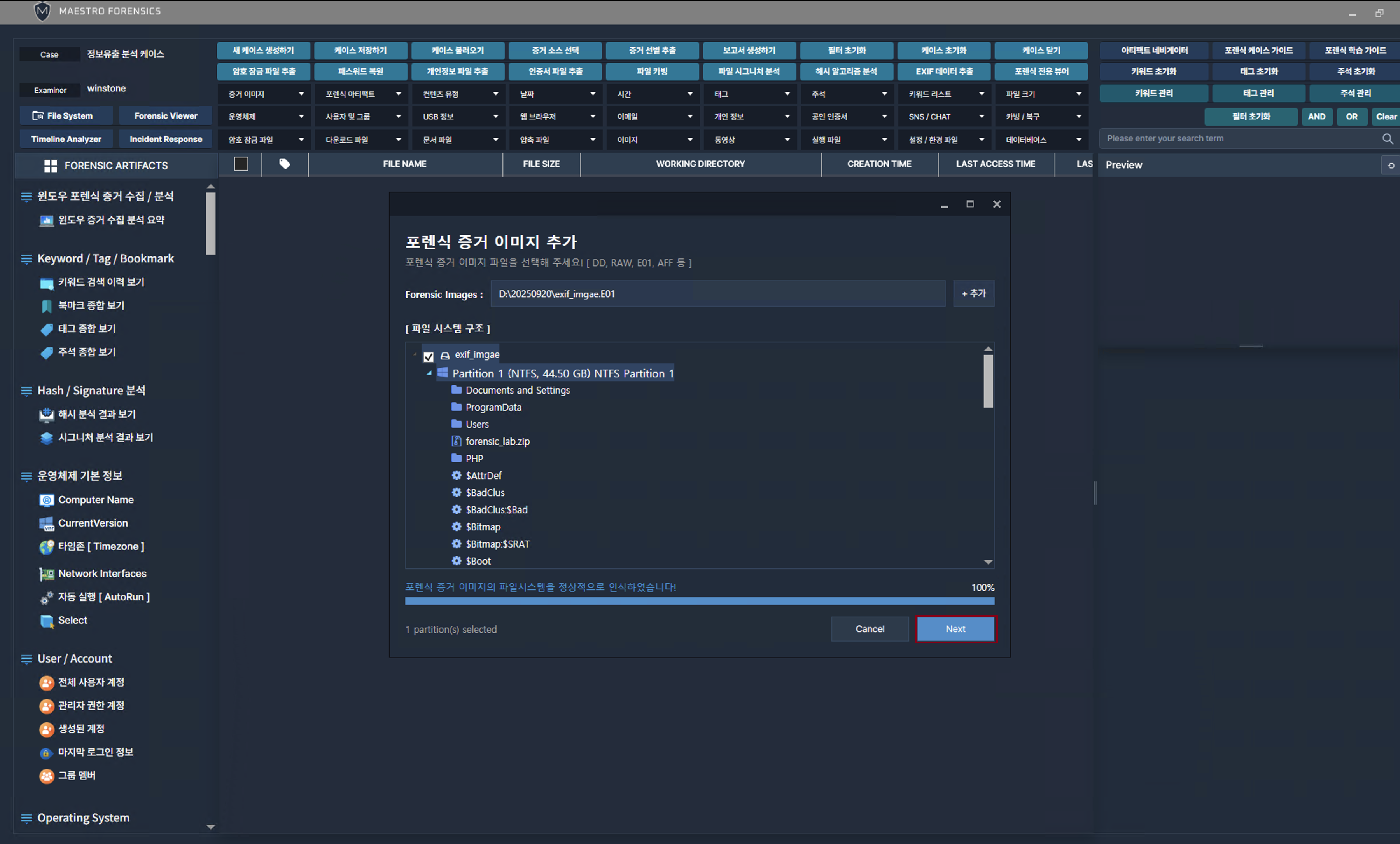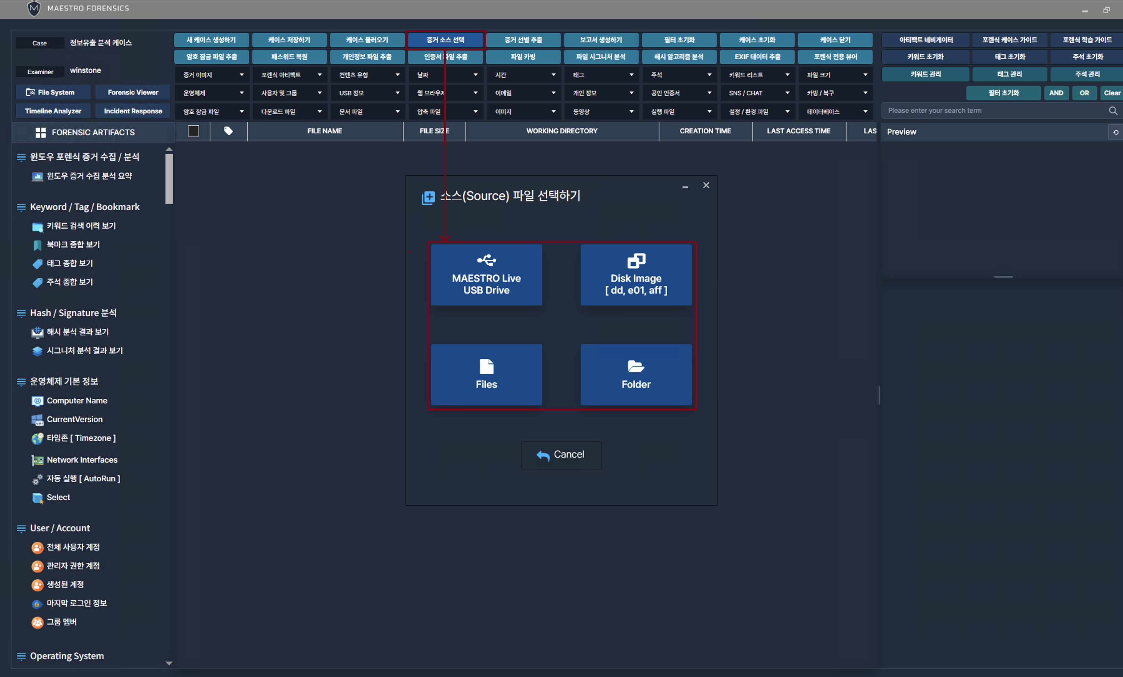 파일 시스템 레벨의 로우데이터 분석과, 수집 시간이 비교적 긴 아티팩트를 수집할 때 활용합니다.