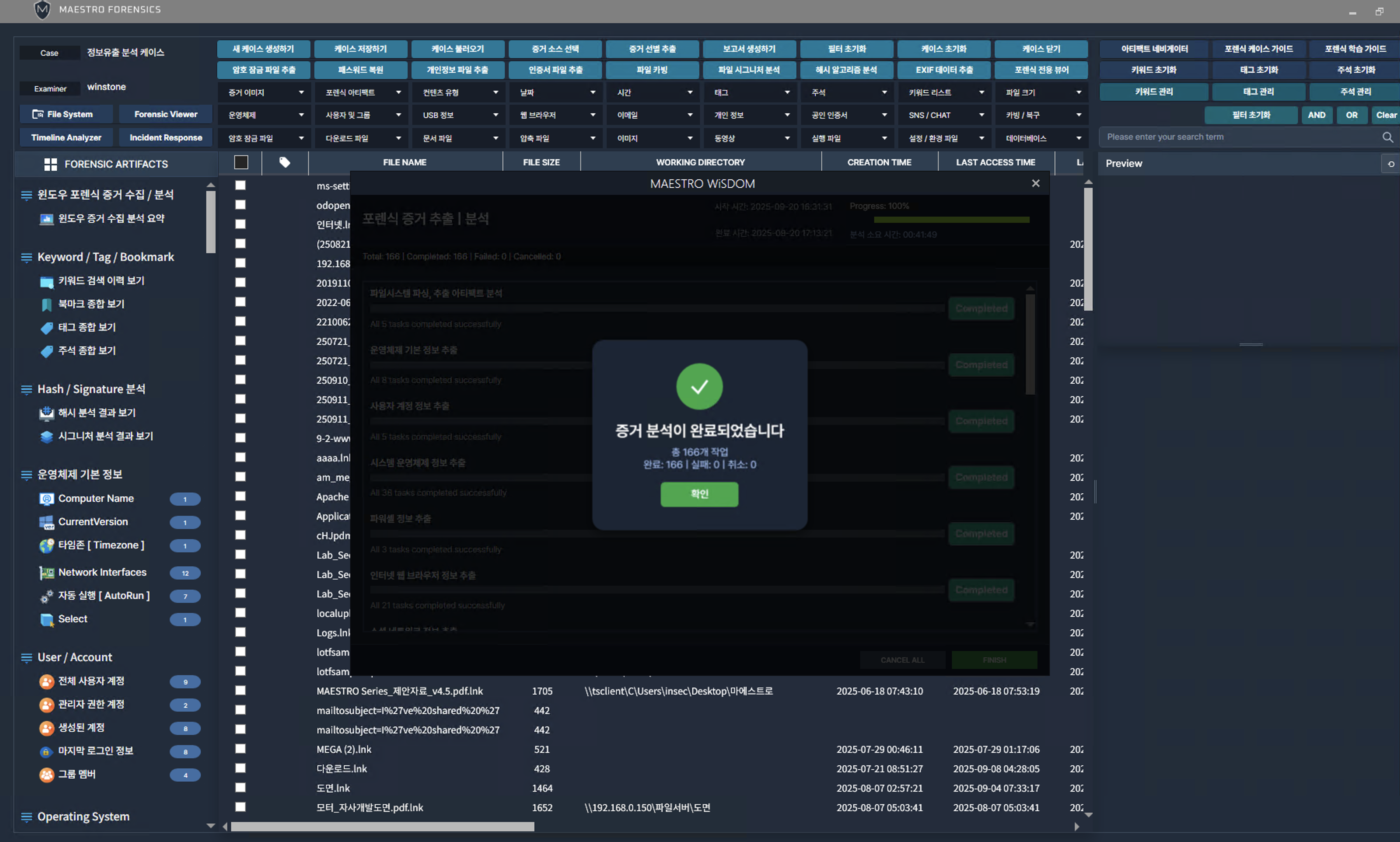 MAESTRO WiSDOM의 전체 모듈 중 수집 속도가 빠른 항목으로 분류된 아티팩트 리스트입니다.