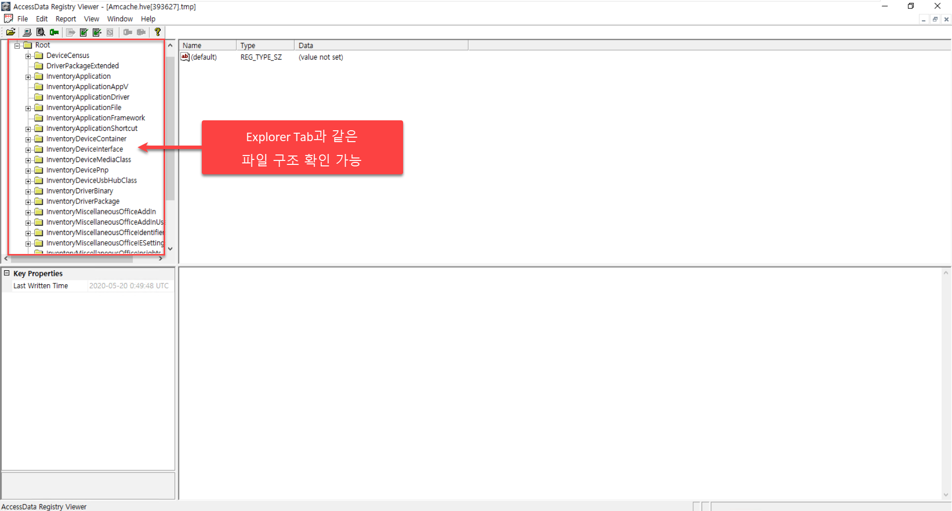 AmCache의 파일 구조를 확인할 수 있습니다.