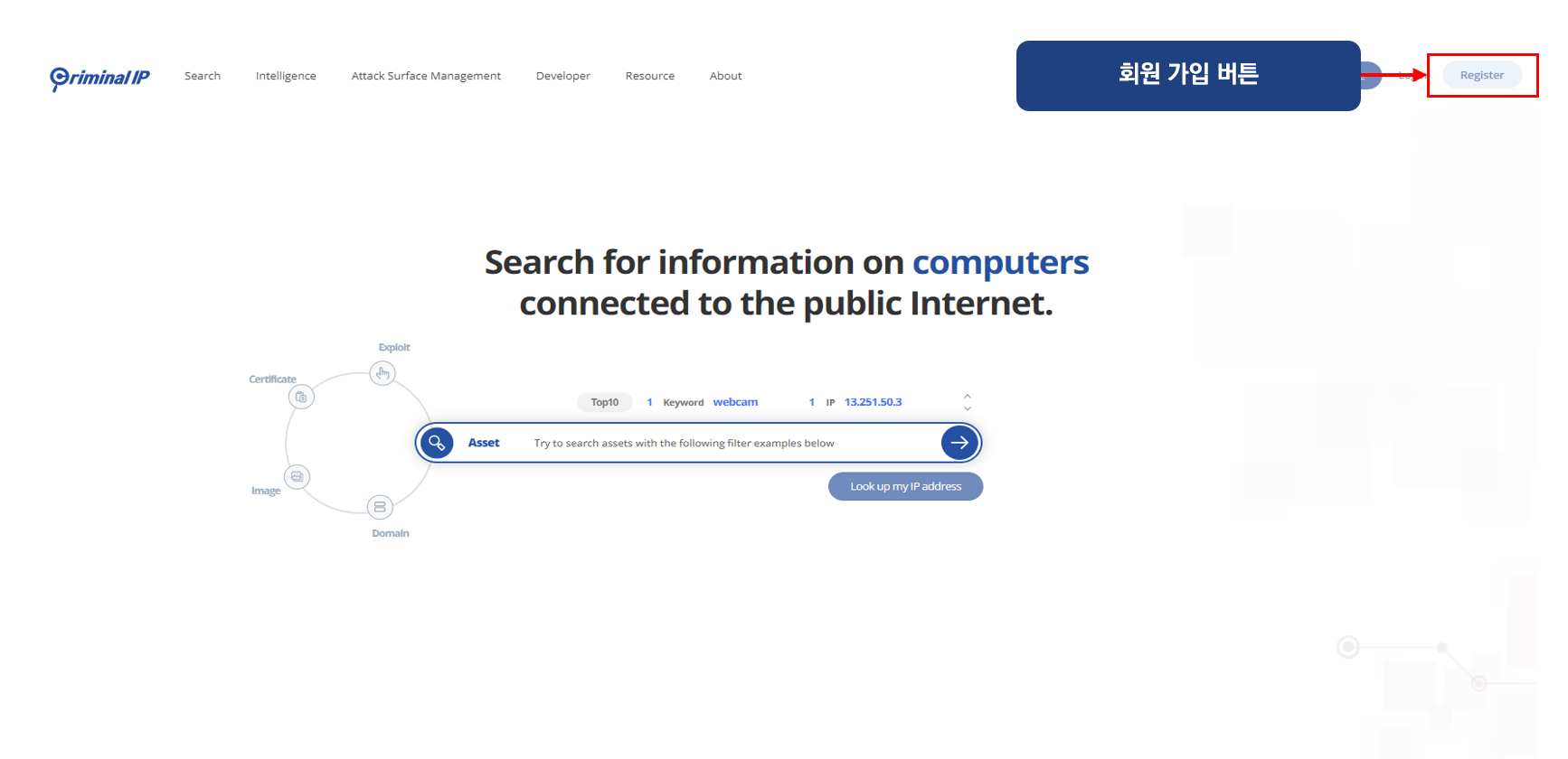 Criminal IP는 개인이나 기업의 사이버 자산과 관련된 취약점을 실시간으로 탐지하고