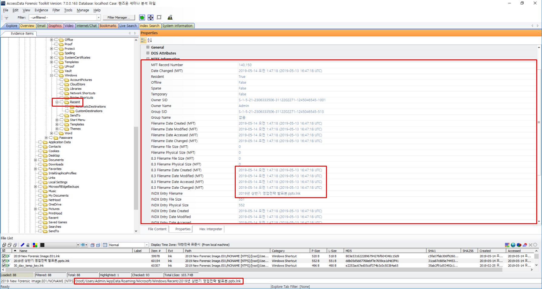 링크파일 스트럭처 분석을 이용한 대상 파일의 [ MACTime ] 정보 제공