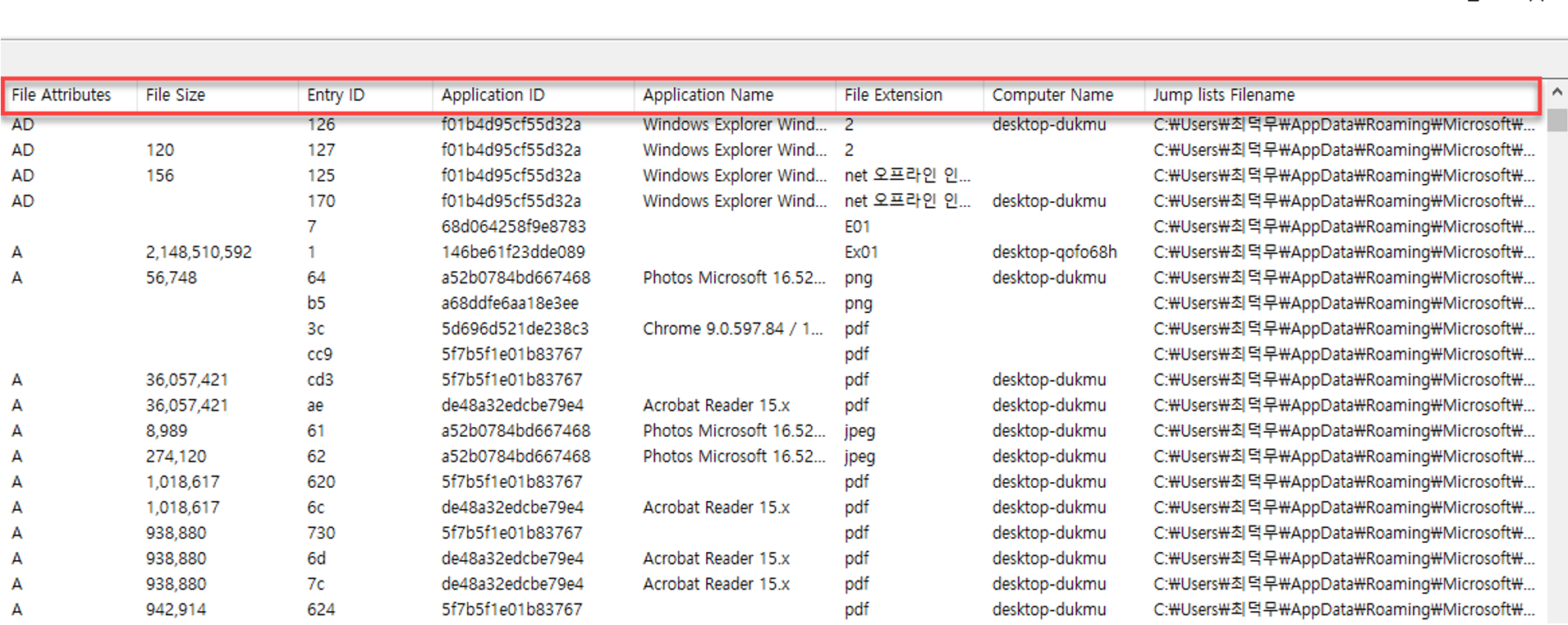 [ File Name ] 컬럼과 [ AppID ] 값을 기반으로한 [ Application Name ] 컬럼을 통해 어떤 문서 실행시 연결된 응용프로그램 정보 분석 가능