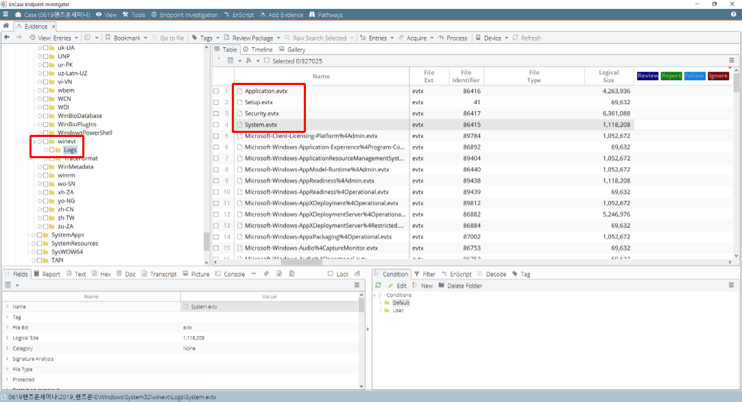 EnCase에서 Windows Event Log 정보 확인