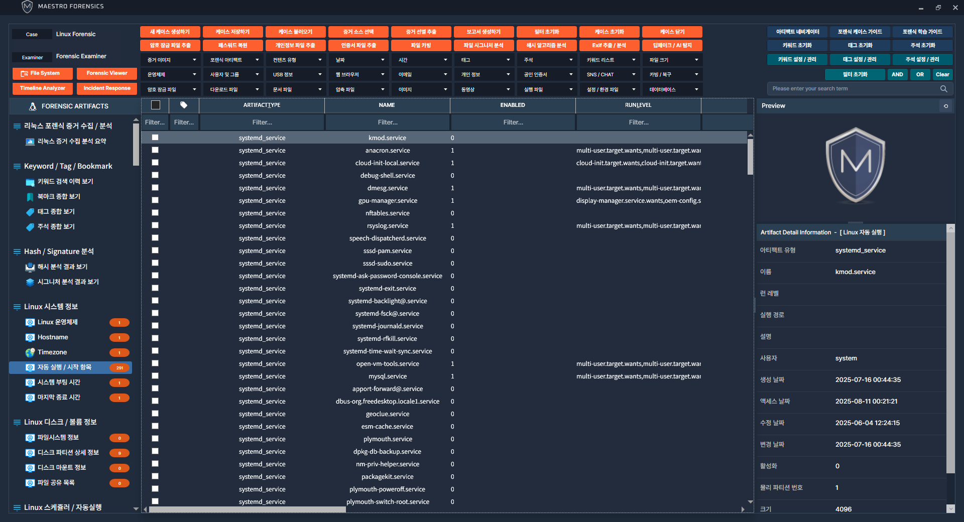 아티팩트 수집이 완료 되면 아래 스크린샷과 같이 카테고리화 된 항목으로 결과가 제공됩니다.